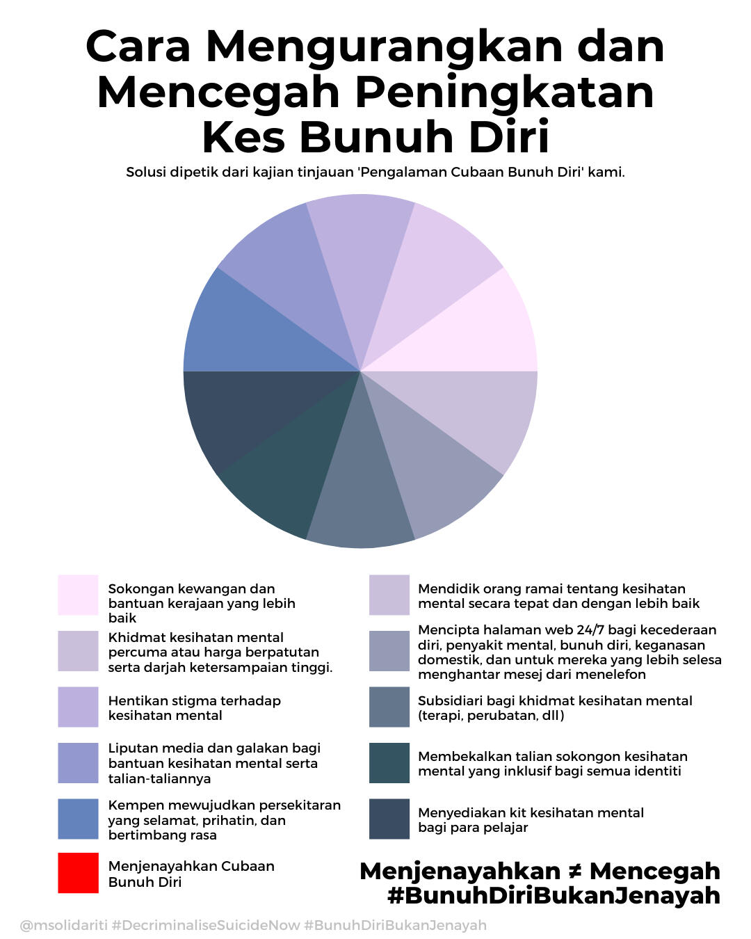 msolidariti.Jangan lupa untuk menggunakan #DecriminaliseSuicideNow dan #BunuhDiriBukanJenayah, dan tag menteri-menteri anda, terutamanya mereka yang mewakili jabatan kesihatan mental seperti Dr. Adham Baba (@DrAdhamBaba) dan Rina Harun (@RinaMohdHarun) di media sosial.Berikut merupakan beberapa grafik yang boleh anda gunakan untuk menyebarkan kempen ini.
