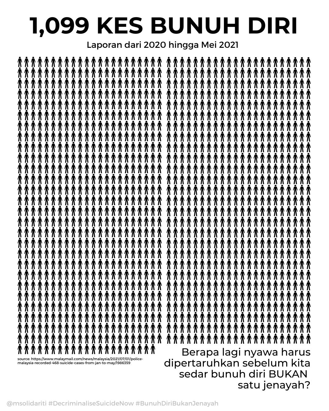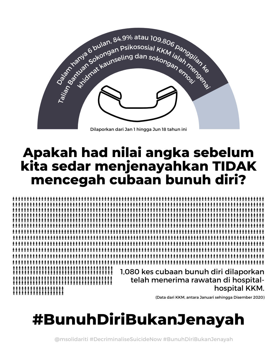 msolidariti.Jangan lupa untuk menggunakan #DecriminaliseSuicideNow dan #BunuhDiriBukanJenayah, dan tag menteri-menteri anda, terutamanya mereka yang mewakili jabatan kesihatan mental seperti Dr. Adham Baba (@DrAdhamBaba) dan Rina Harun (@RinaMohdHarun) di media sosial.Berikut merupakan beberapa grafik yang boleh anda gunakan untuk menyebarkan kempen ini.